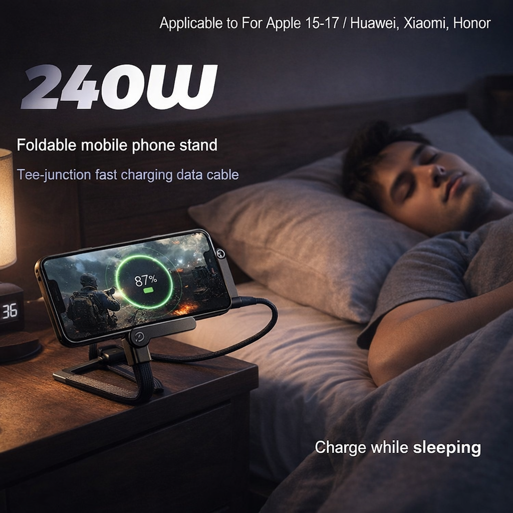 It supports up to 240W fast charging (device-dependent), delivering power much faster than standard cables.